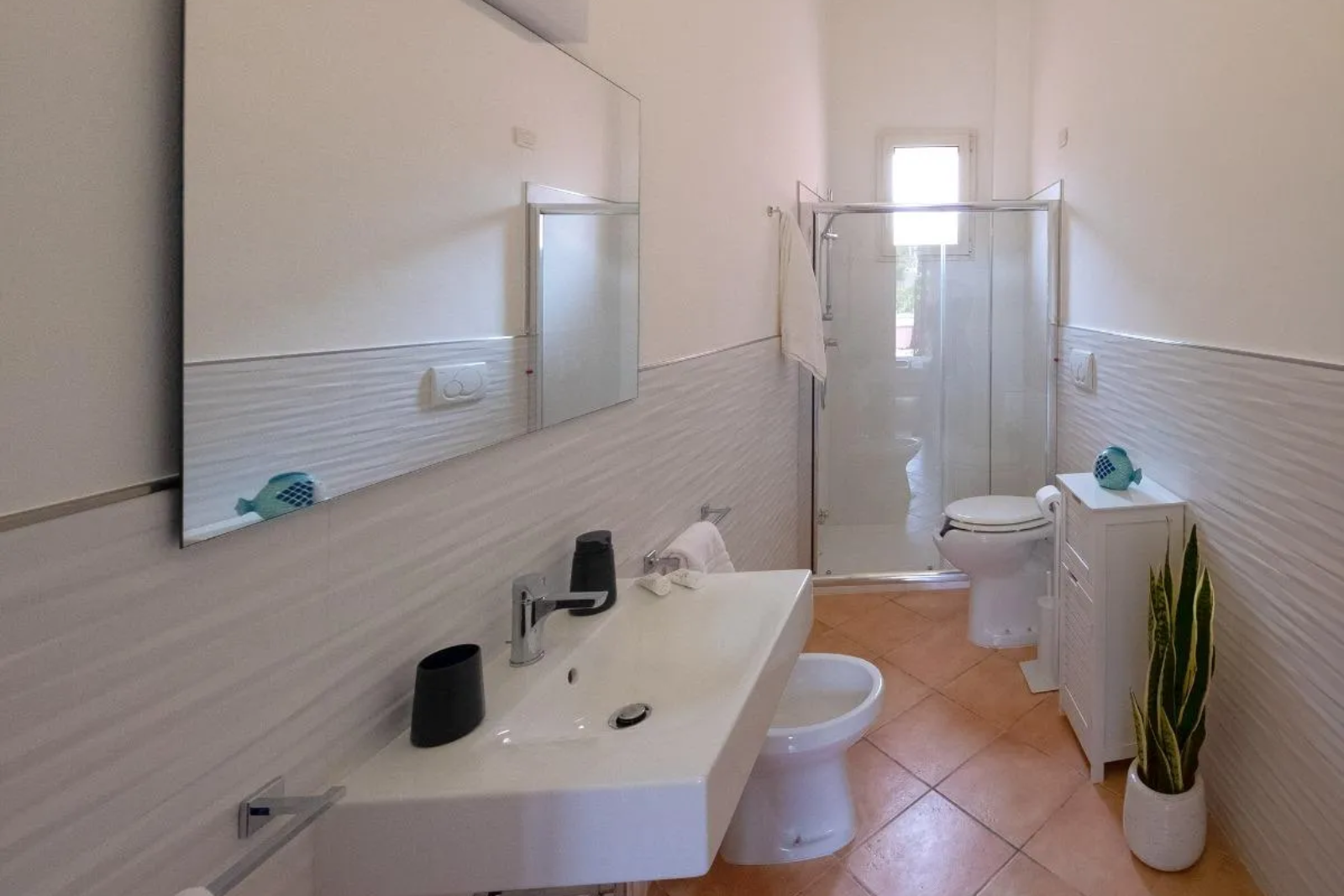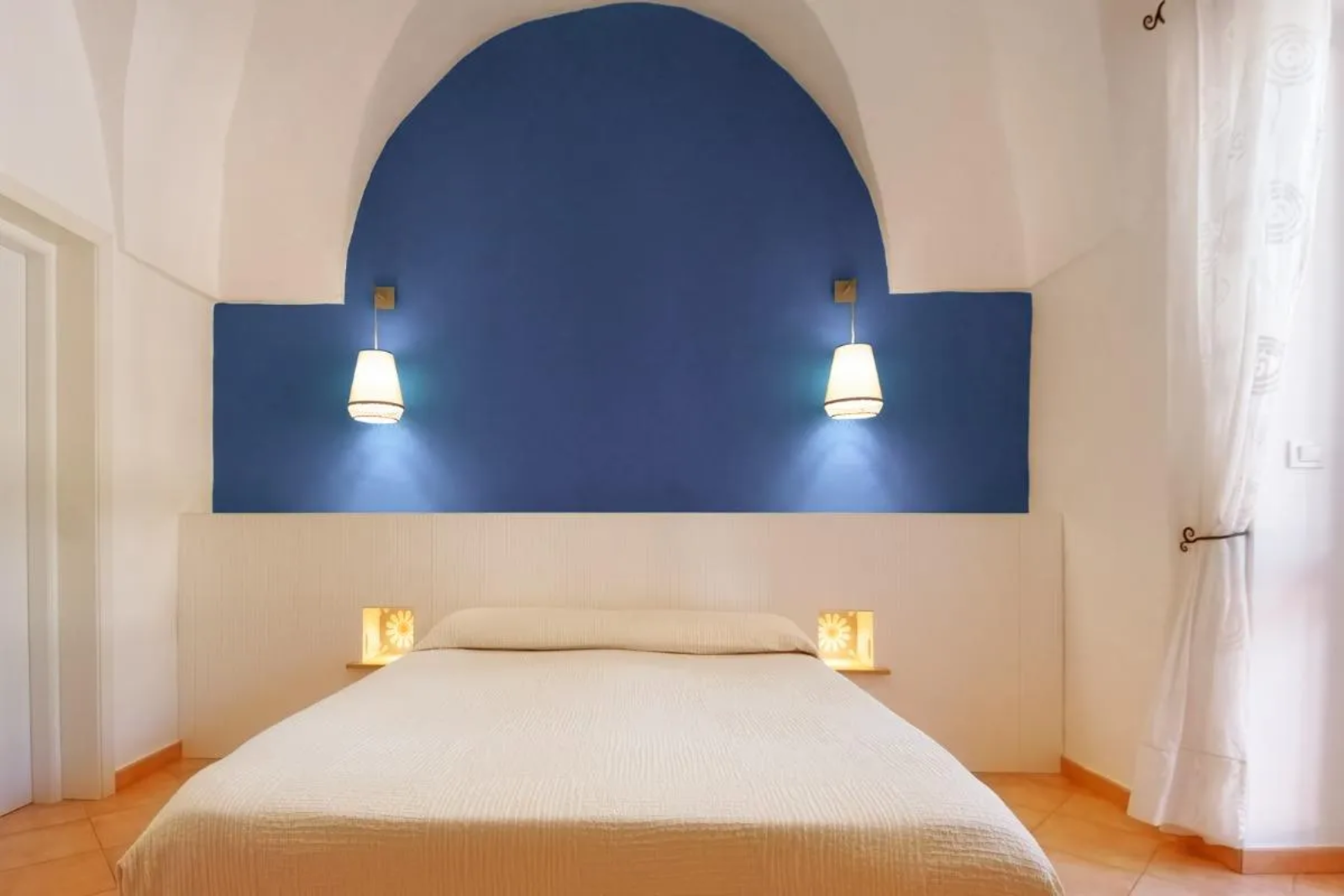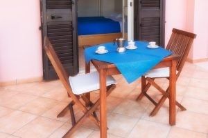 Camera matrimoniale con terzo letto e spazio esterno coperto da loggiato. Dispone di bagno con doccia, aria condizionata, tv, frigo e wi-fi gratuita.